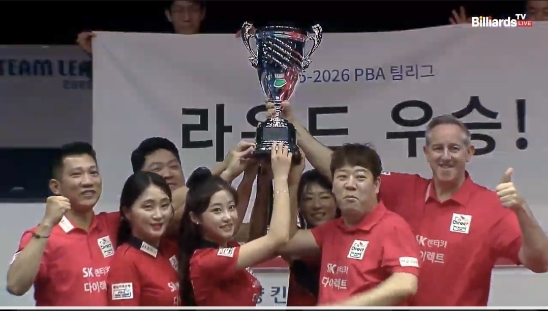 PBA팀리그 2라운드 우승팀은 다니엘 산체스와 세미 사이그너가 있는 웰컴저축은행 당구팀입니다.