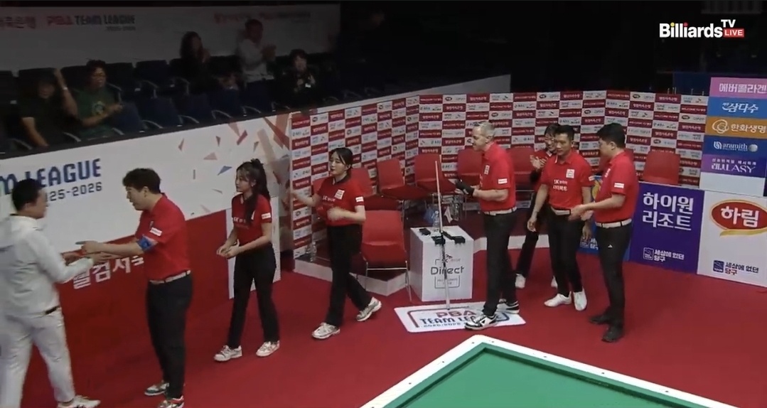 PBA팀리그 1라운드 우승팀은 김가영, 초클루가 활약하는 하나카드 당구팀입니다.