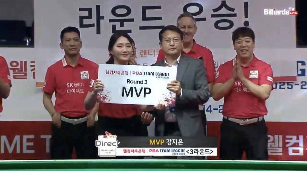 프로당구 2025-2026시즌 PBA 팀리그 3라운드 우승팀은 SK렌터카 당구팀으로 확정 되었습니다. SK렌터카 당구팀은 3라운드 9개 경기 가운데 첫 경기를 제외한 나머지 8개 경기를 모두 승리하는 엄청난 집중력을 보여주었습니다.