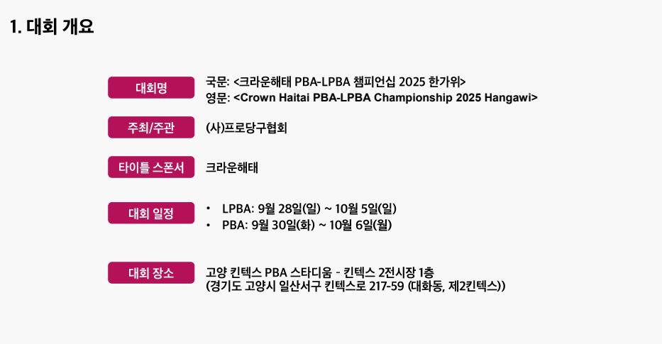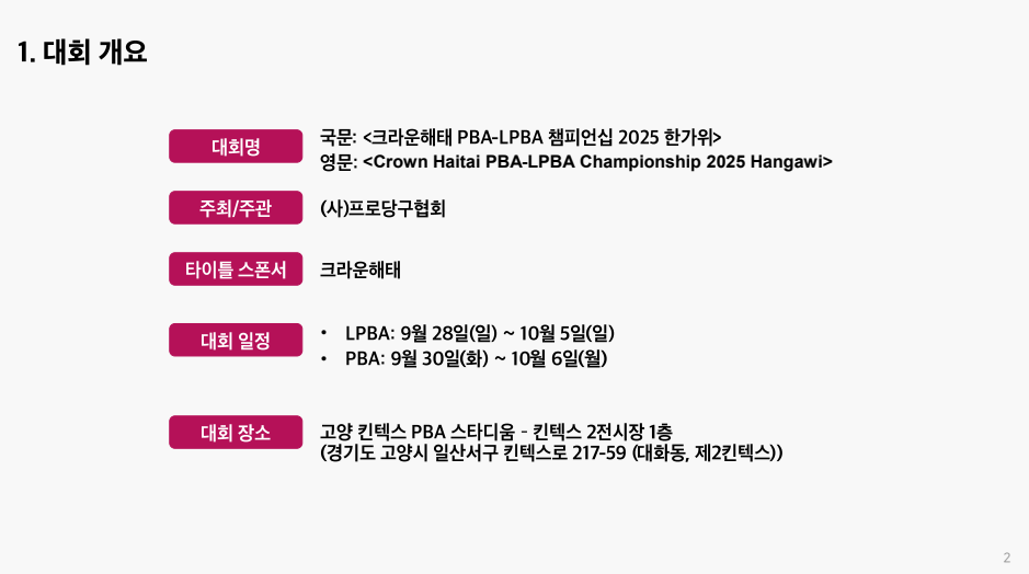 - 대회명 : 크라운해태 PBA-LPBA 챔피언십 2025 한가위