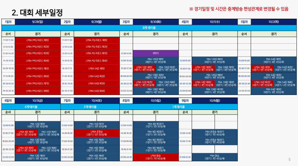 - 안내 문구 : “경기일정 및 시간은 중계방송 편성관계로 변경될 수 있음”