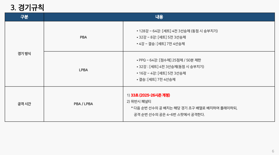4) PBA-LPBA 세부 경기 규정 규칙