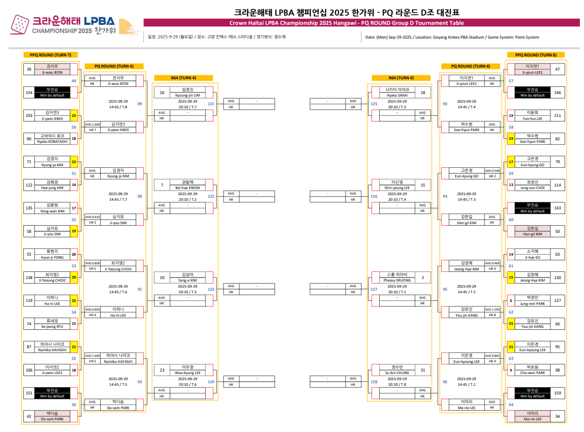 크라운해태 LPBA 챔피언십 2025 한가위 PQ 라운드 대진표