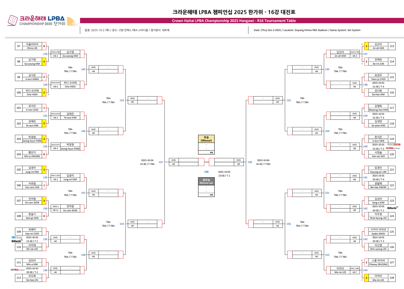 ■ 크라운해태 LPBA 챔피언십 2025 한가위 16강 대진표 (1)
