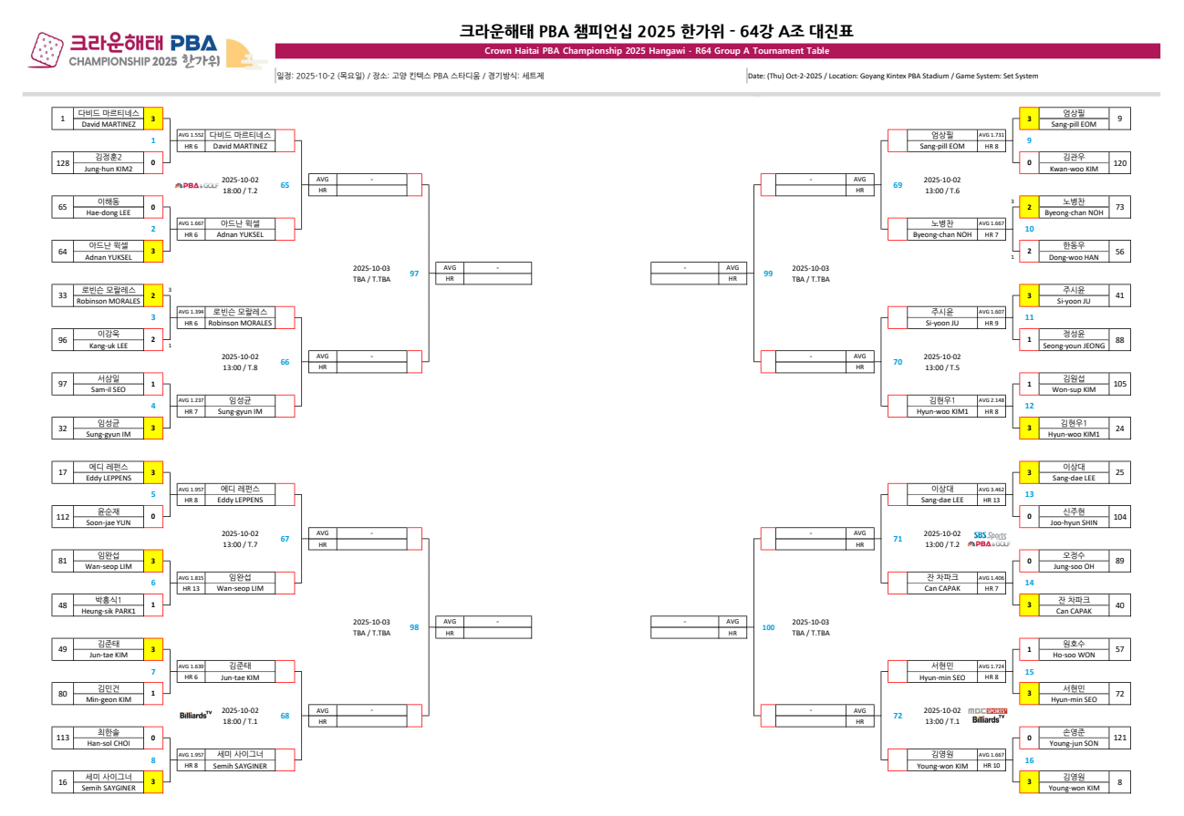 2. 크라운해태 PBA 챔피언십 2025 한가위 64강 대진표