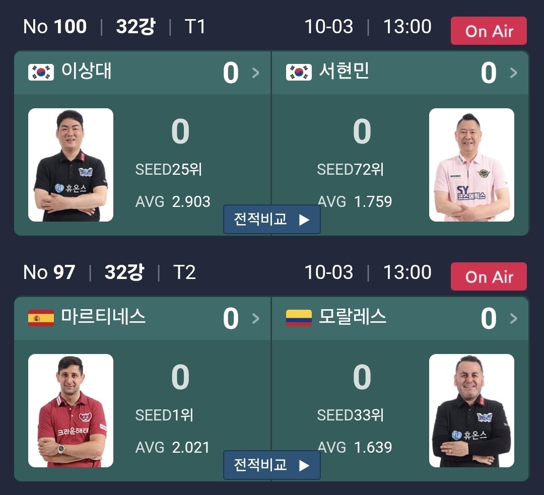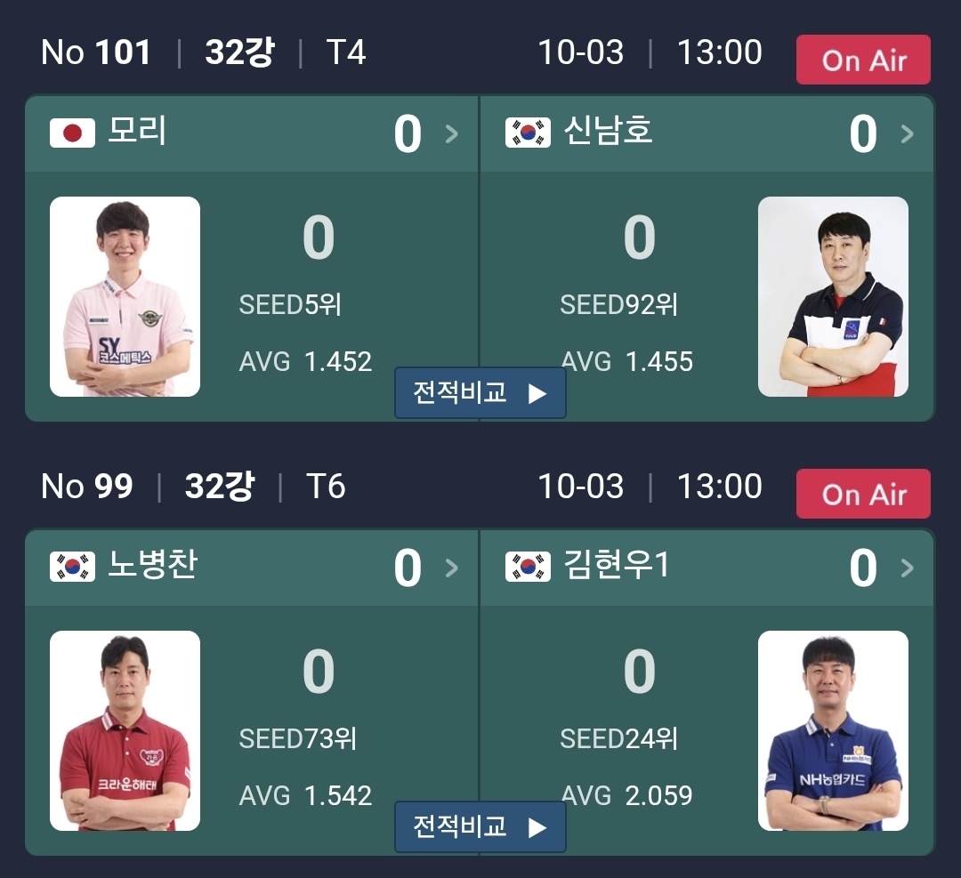 한편 강동궁은 고상운과 조재호는 박승희 선수와 32강 경기를 펼칩니다.