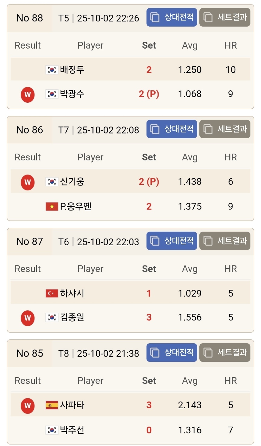 1. 크라운해태 PBA 챔피언십 2025 한가위 64강 경기결과
