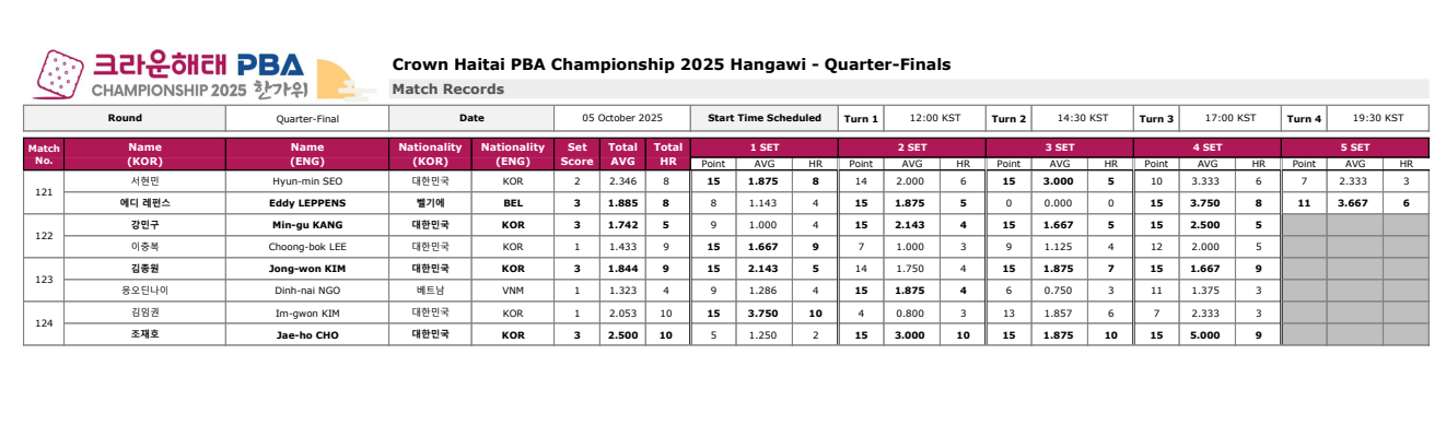크라운해태 PBA 챔피언십 2025 한가위 8강 경기결과 입니다.