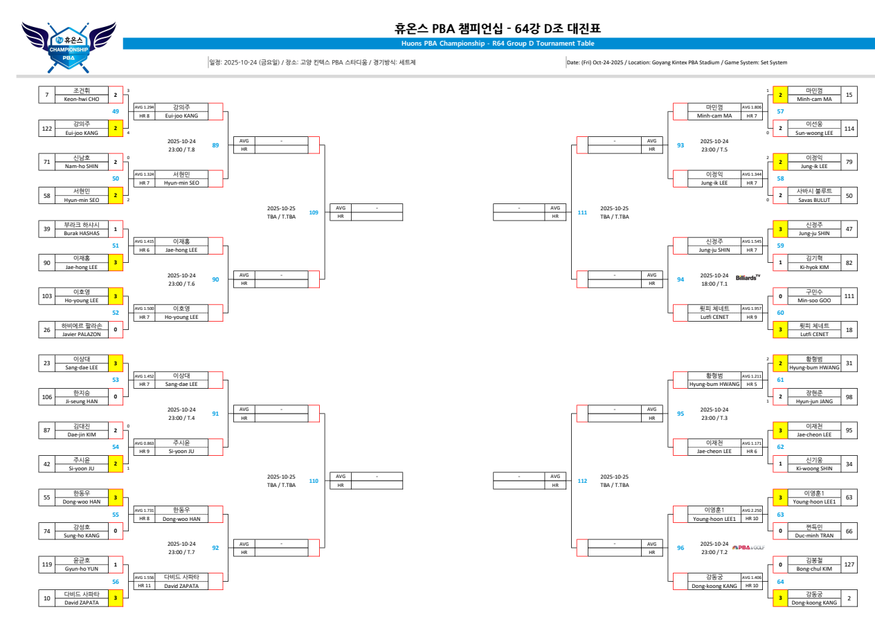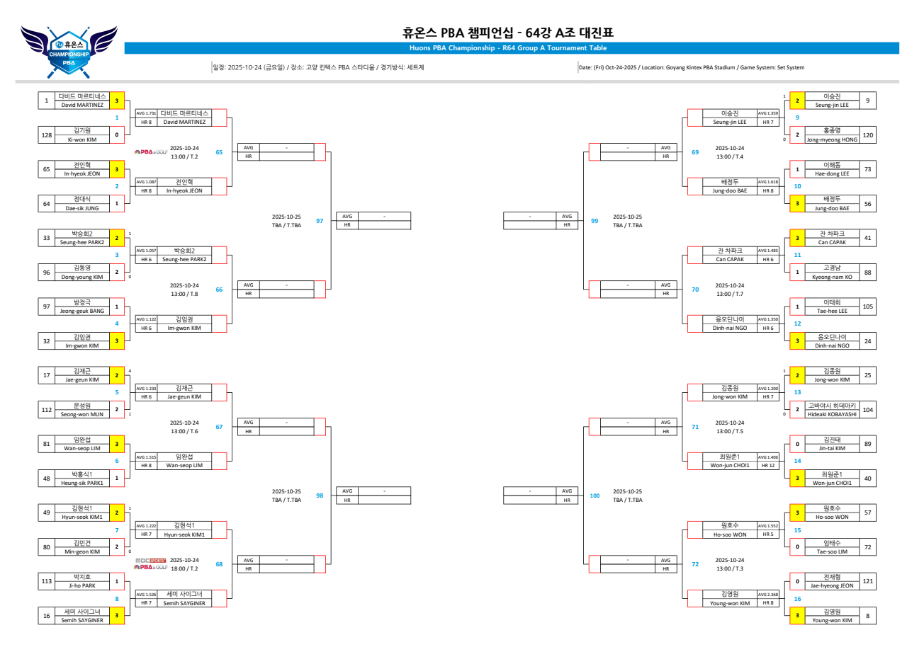 휴온스 PBA 챔피언십 64강 대진표 (1)