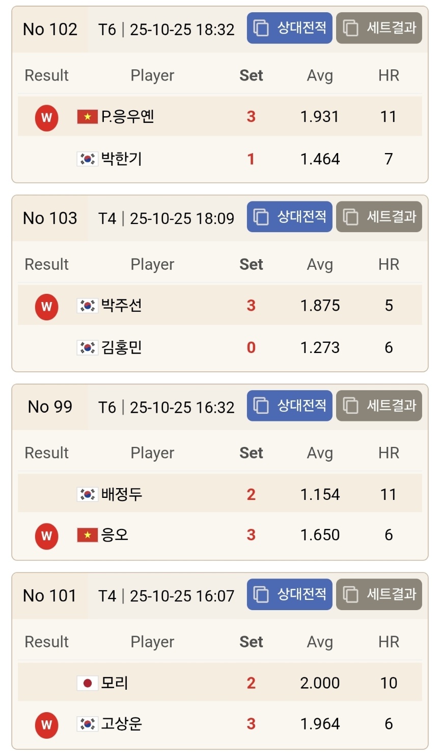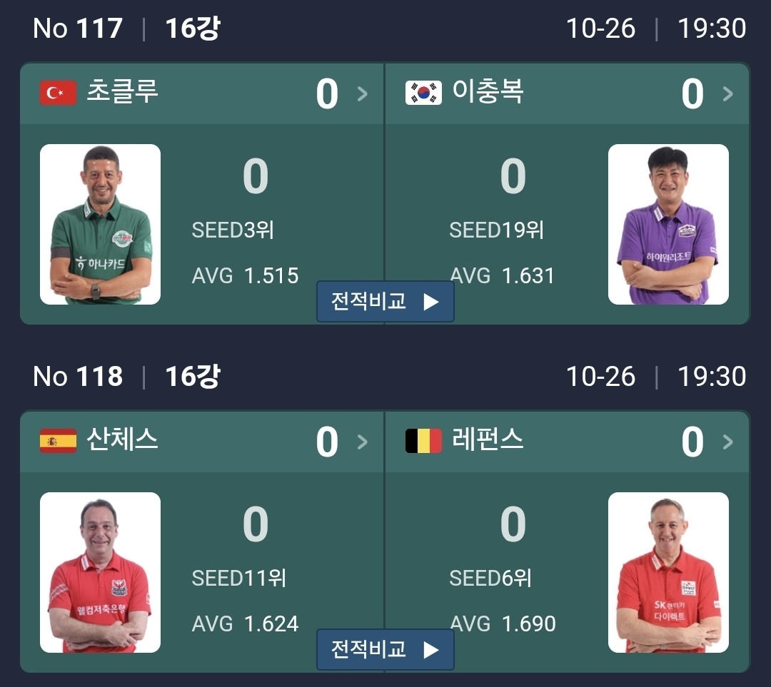 | 휴온스 LPBA 챔피언십 4강 준결승 대진표 8강 경기결과(프로당구 25-26) (0) | 2025.10.26 |