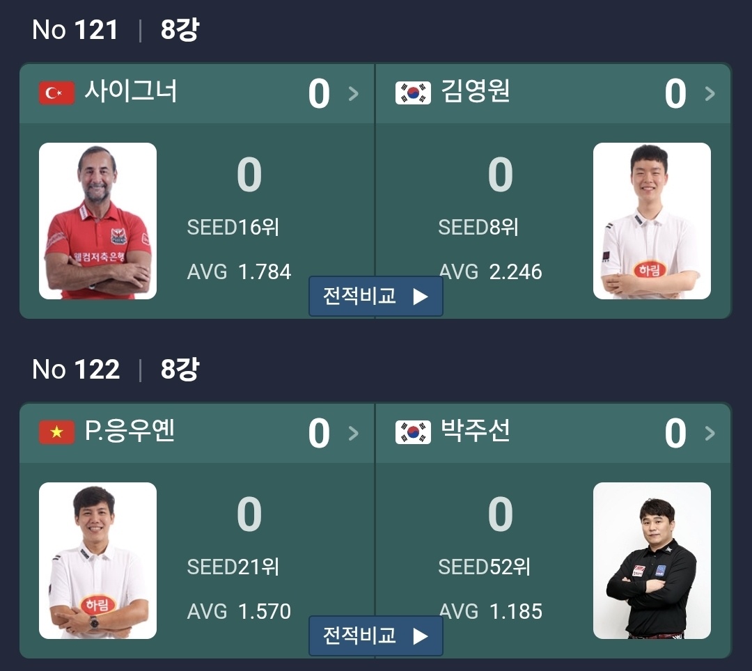 | 휴온스 LPBA 챔피언십 4강 준결승 대진표 8강 경기결과(프로당구 25-26) (0) | 2025.10.26 |