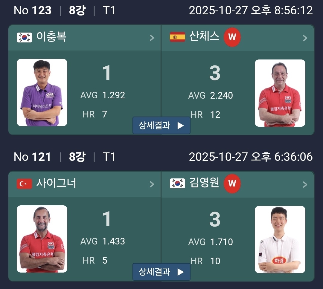 오늘은 프로당구 2025-26시즌 6차대회 (6차 투어) 휴온스 PBA 챔피언십 8강 경기결과와 4강 대진표를 정리하였습니다.