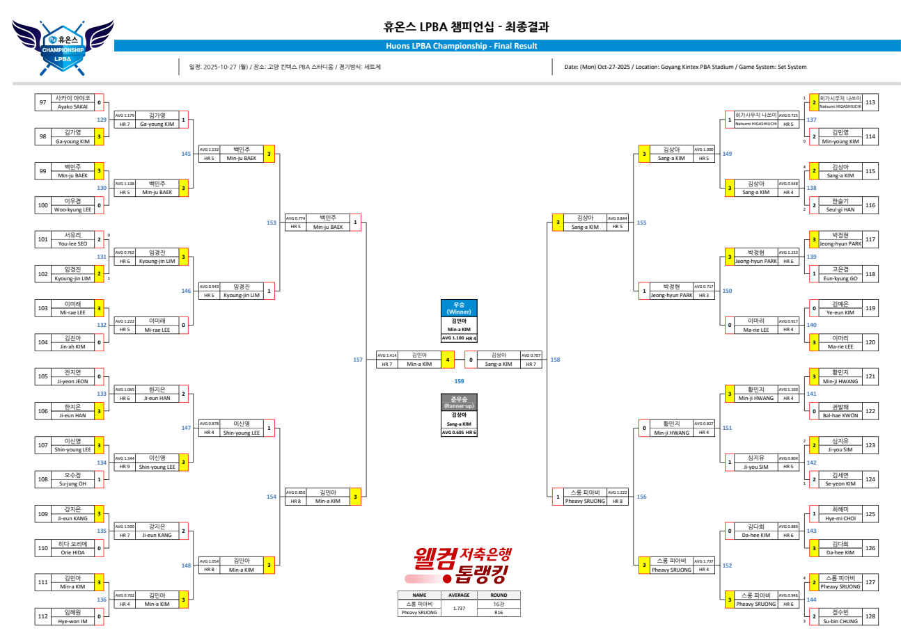 휴온스 LPBA 챔피언십 결승 대진표, 최종 경기결과입니다