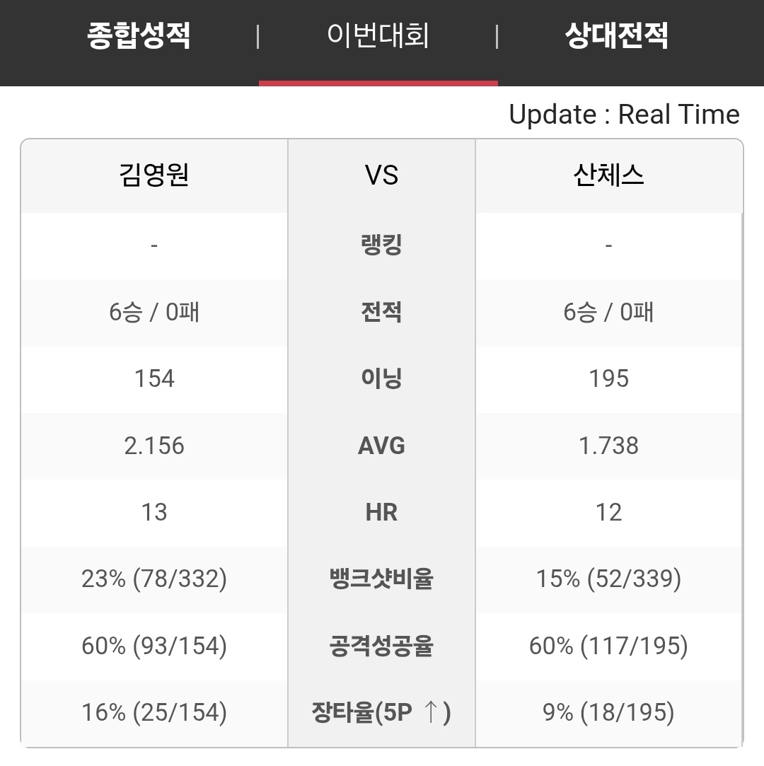 | 이번 대회 전적 | 6승 0패 | 6승 0패 |