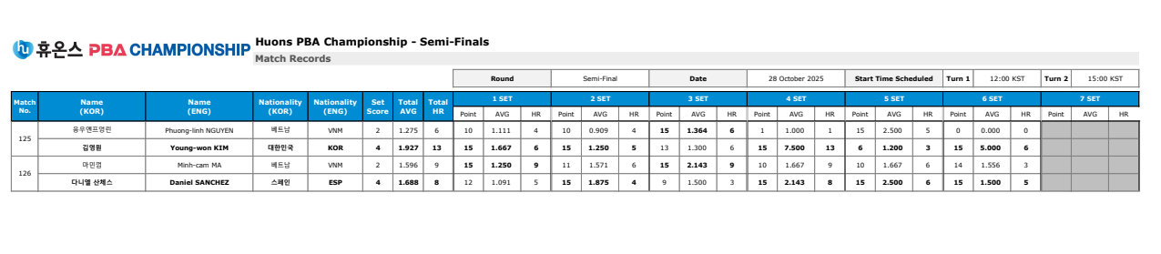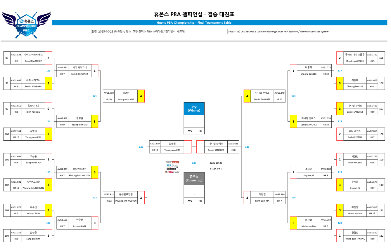 김영원이 새로운 시대를 열지, 산체스가 왕의 자리를 지킬지— 휴온스 PBA 챔피언십 결승전의 결과를 함께 지켜봅니다.
