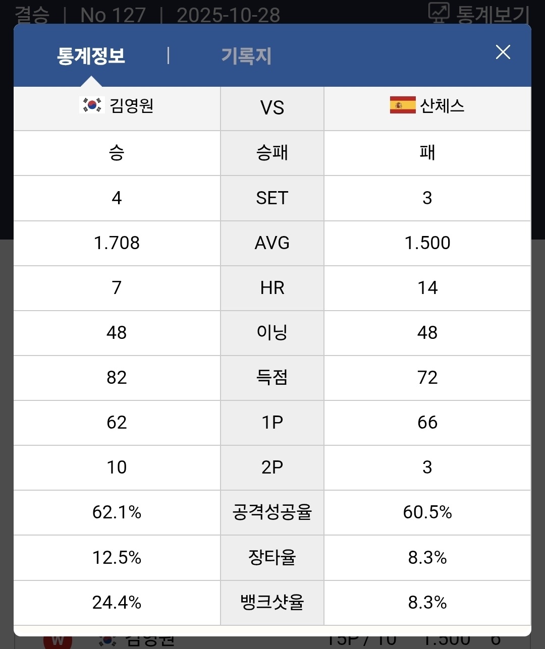 세트점수(김영원)이닝점수(산체스)이닝승자
