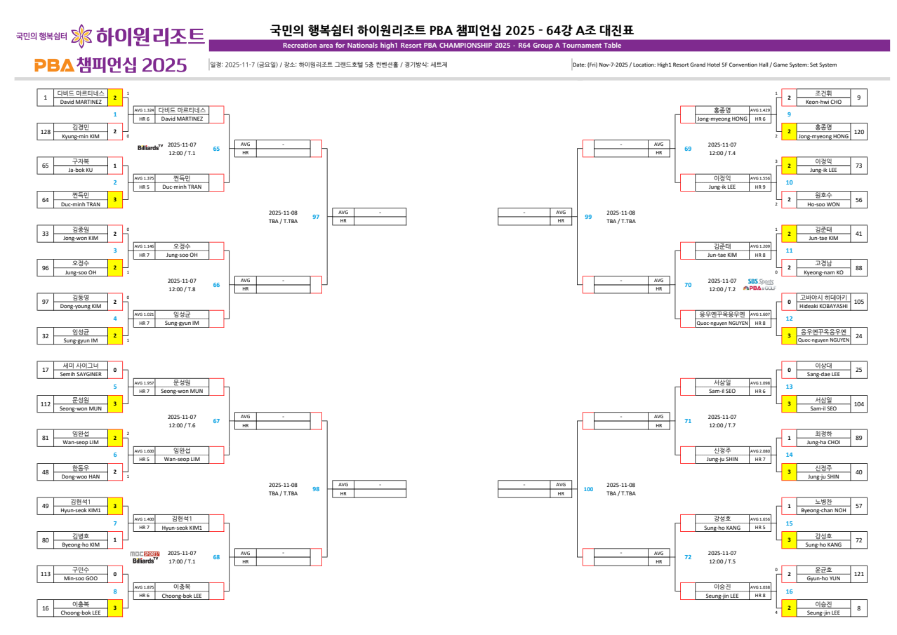 하이원리조트 PBA 챔피언십 64강 대진표 (주요 매치업)