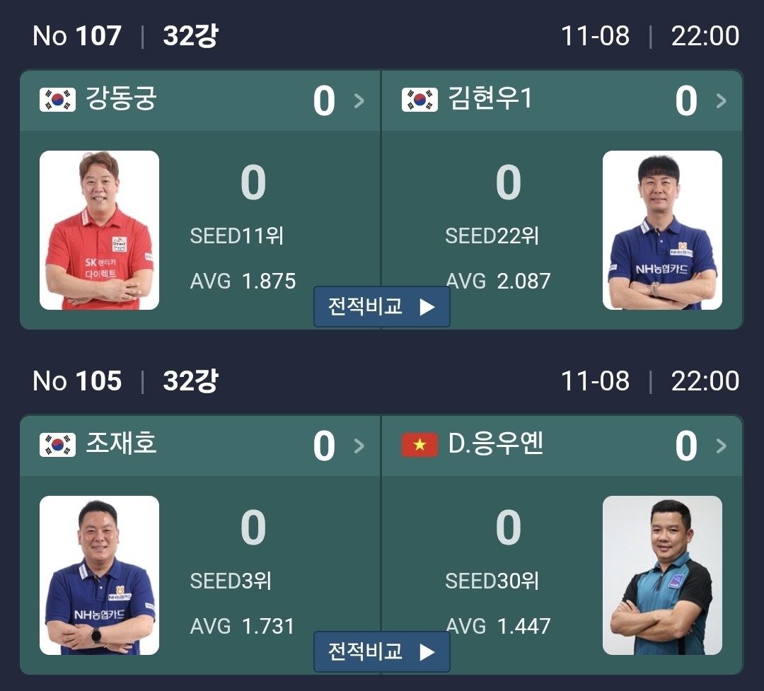 | 하이원리조트 PBA 챔피언십 2025 - 64강 대진표 (128강 경기 결과) (3) | 2025.11.07 |