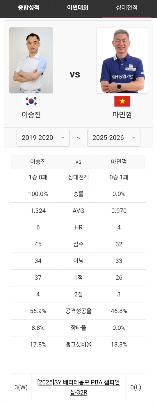 2025.11.10 - [Sports/PBA-LPBA투어] - 신남호 마민껌 당구선수 - 하이원리조트 PBA 챔피언십 2025 8강 경기 리뷰