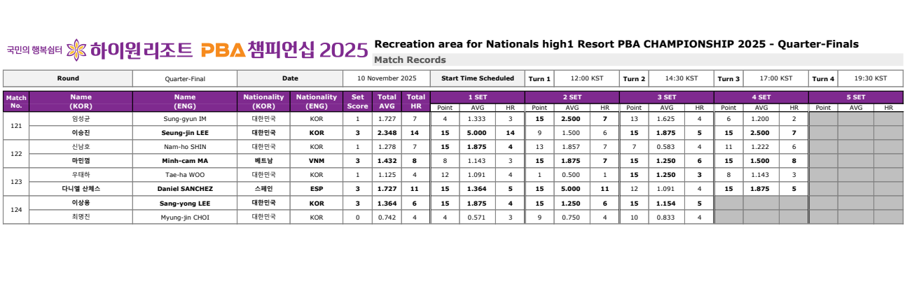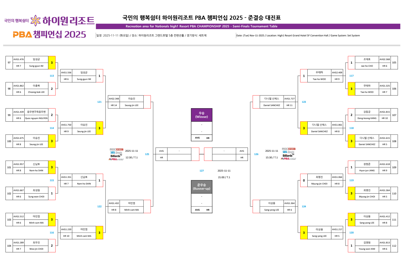 하이원리조트 PBA 챔피언십 2025 - 8강 경기결과 및 4강 준결승 대진표