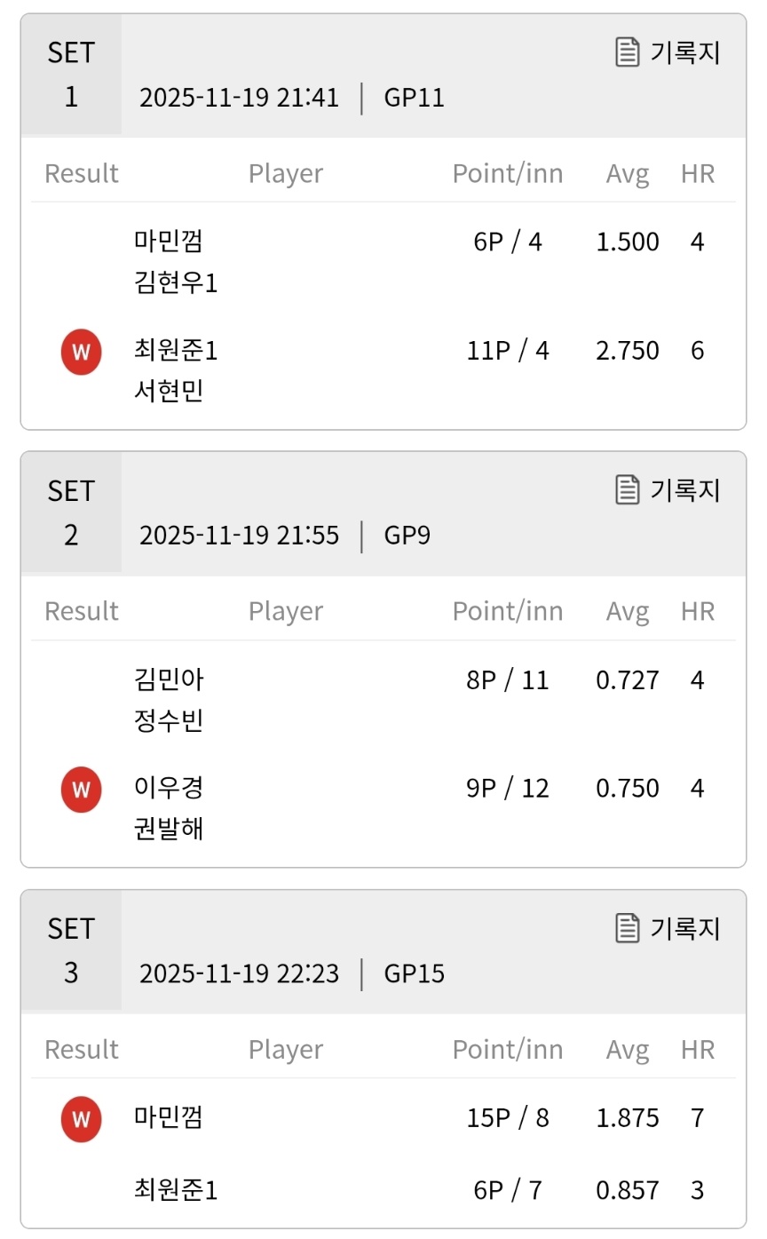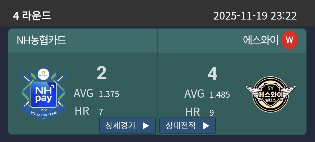에스와이 빌더스 vs NH농협카드 프로 당구팀 경기 결과