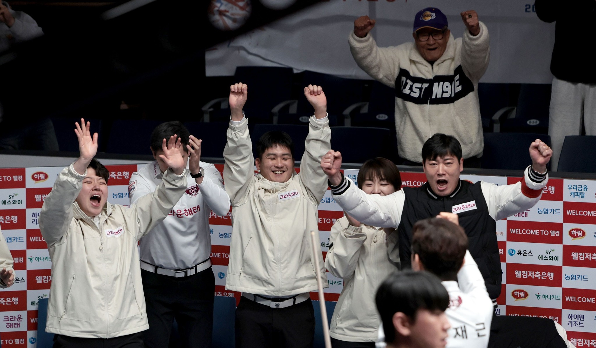2세트 여자 복식에서 하림의 박정현·김상아 조는 12이닝 동안 7점을 기록했으나, 크라운해태의 히가시우치·백민주 조는 같은 이닝 동안 9점을 올리며 9 대 7 역전승을 거두었습니다. 백민주 선수는 결정적인 장면마다 안정적인 포지션 플레이와 섬세한 뱅크샷을 성공시키며 팀에 흐름을 가져왔고, 히가시우치 선수와의 호흡 역시 돋보였습니다.