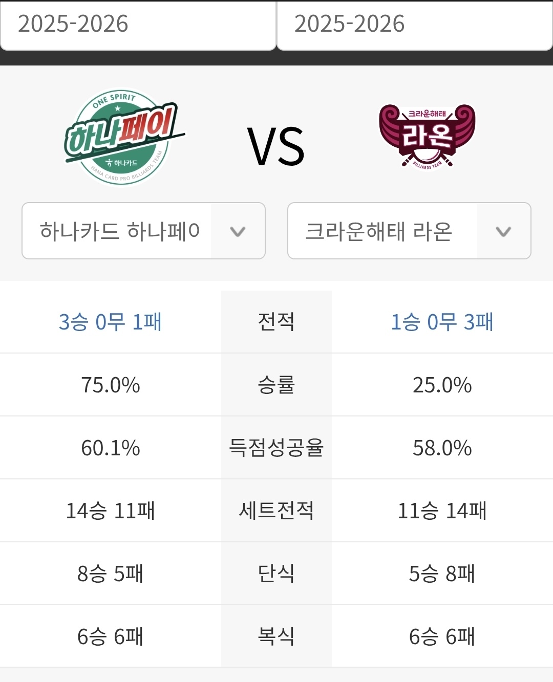 11월 23일에는 PBA 팀리그 4라운드 8일차에서 중요한 상위권 맞대결이 펼쳐졌습니다. 7일차 기준으로 크라운해태 라온은 4라운드 2위, 하나카드 하나페이는 3위에 자리하고 있어, 이번 승부 결과에 따라 라운드 우승 경쟁에 큰 변화가 올 수 있는 날이었습니다. 특히 크라운해태는 이날 승리한다면 1위 자리까지 넘볼 수 있는 절호의 기회를 맞았고, 하나카드는 상위권 수성을 위해 반드시 승리가 필요했습니다.