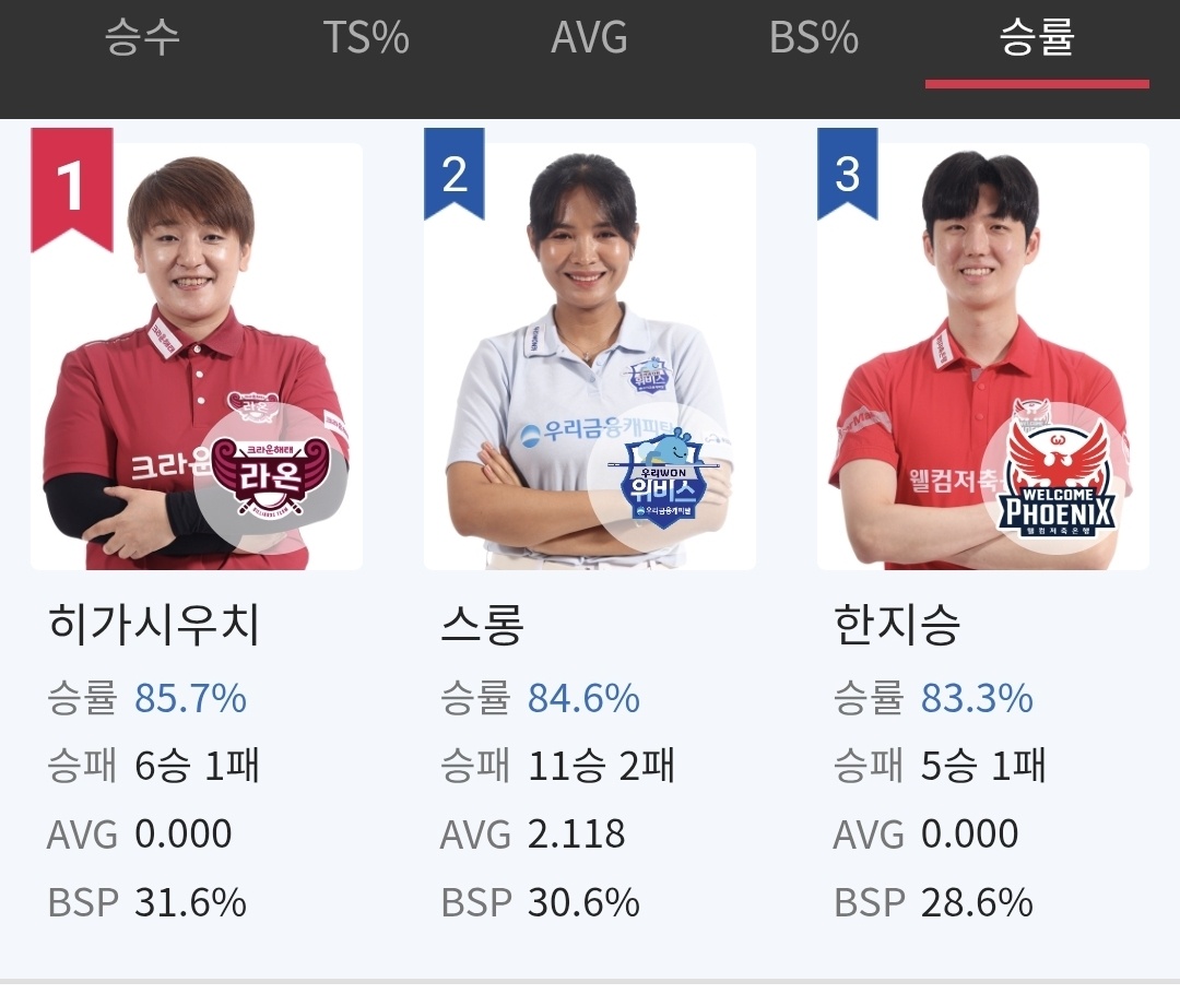 PBA 팀리그 4라운드 개인 승률 Top 3 선수 소개