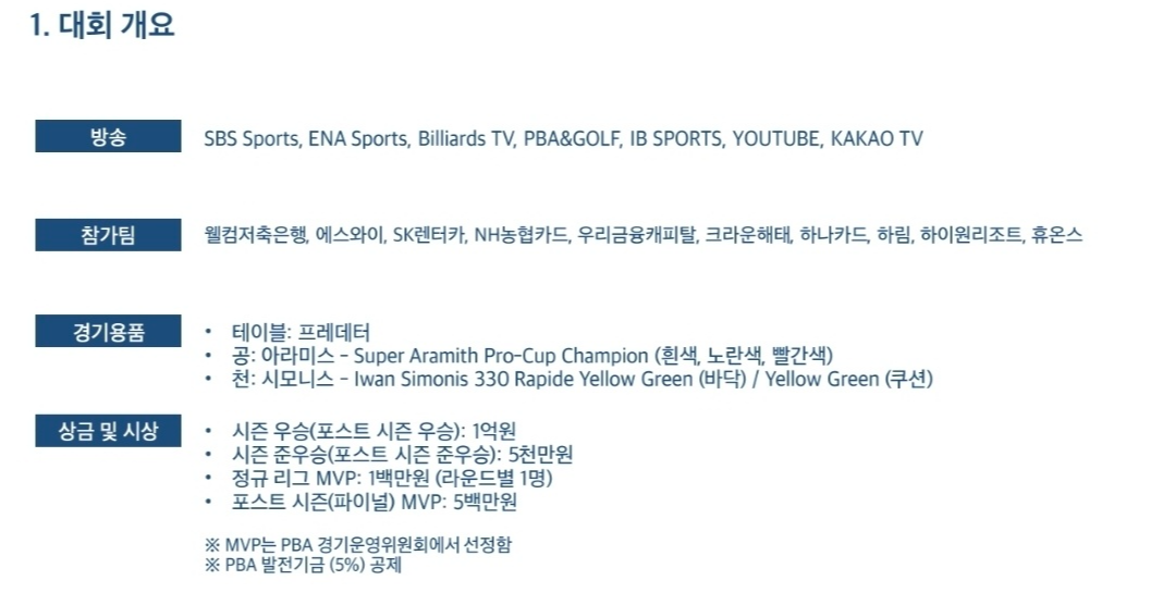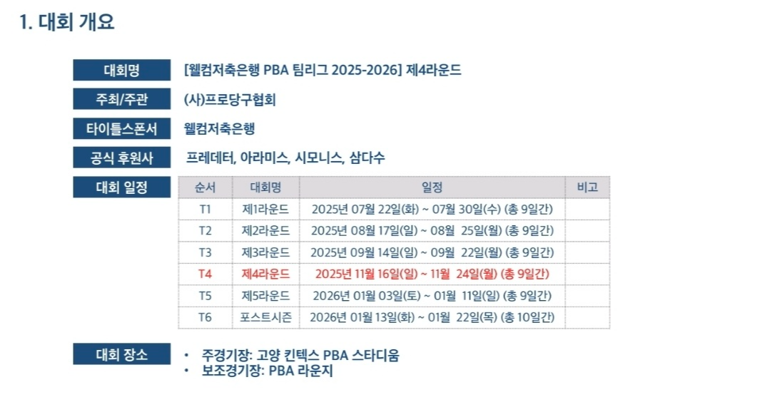 | PBA 팀리그 2025-2026 제5라운드 대회요강 경기규칙 우승팀 상금 (0) | 2026.01.03 |