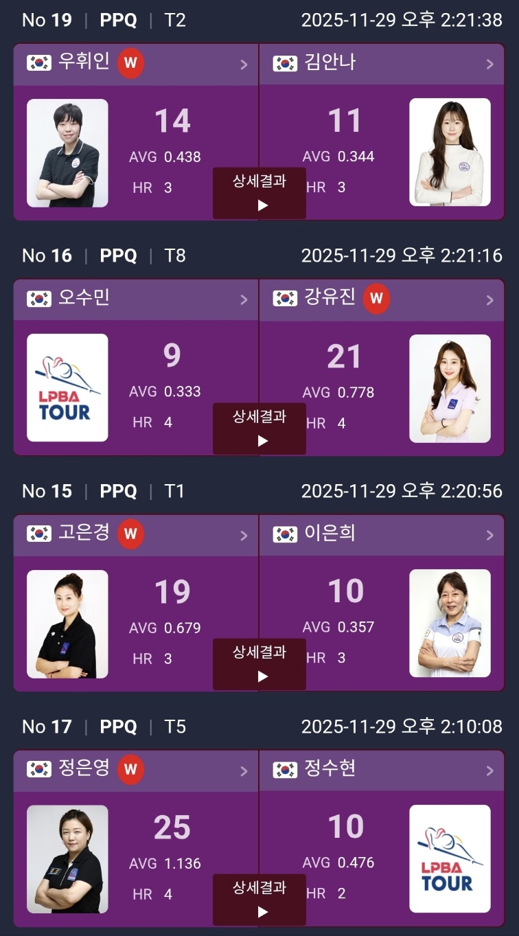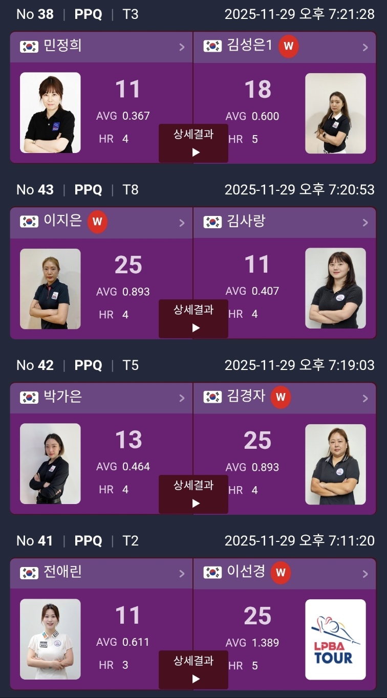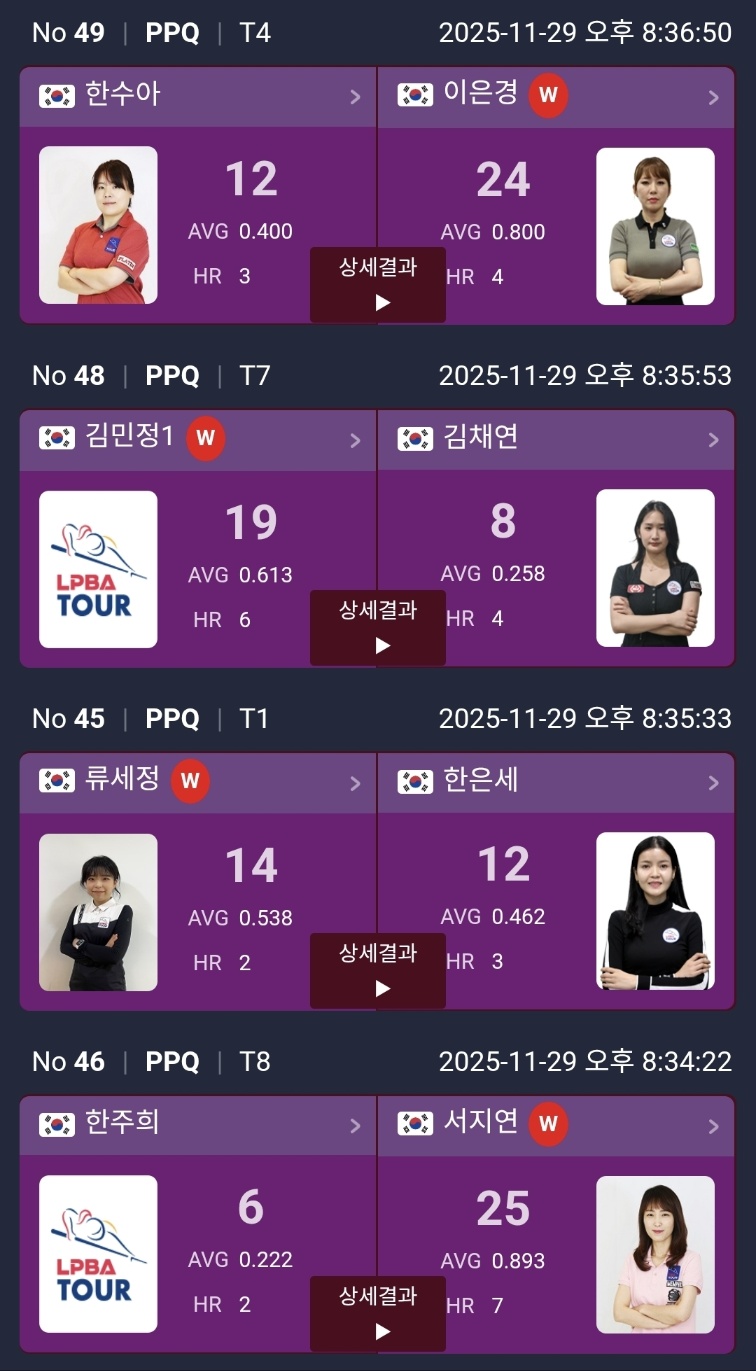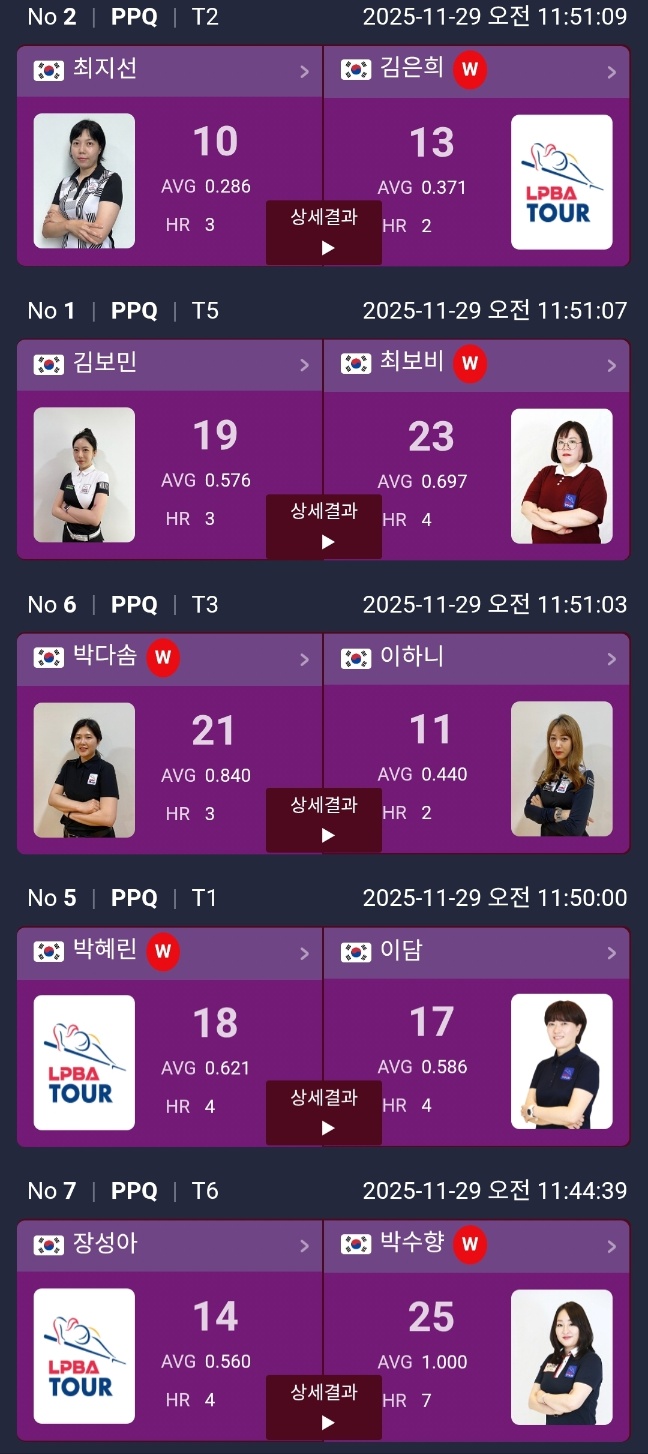 하림 LPBA 챔피언십 2025 PPQ 라운드 경기 결과 및 PQ 대진표