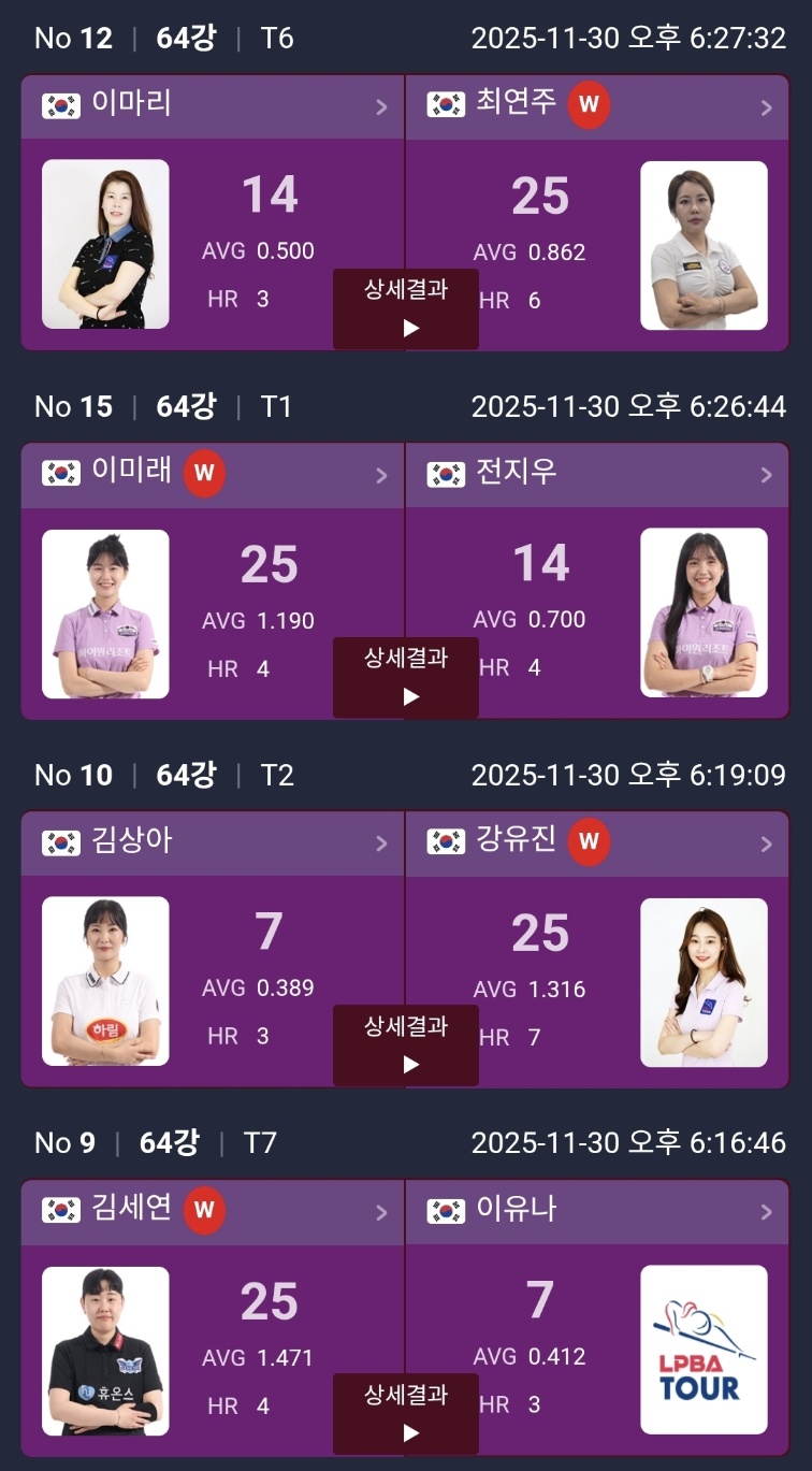 하림 LPBA 챔피언십 2025 – 64강 경기결과 정리