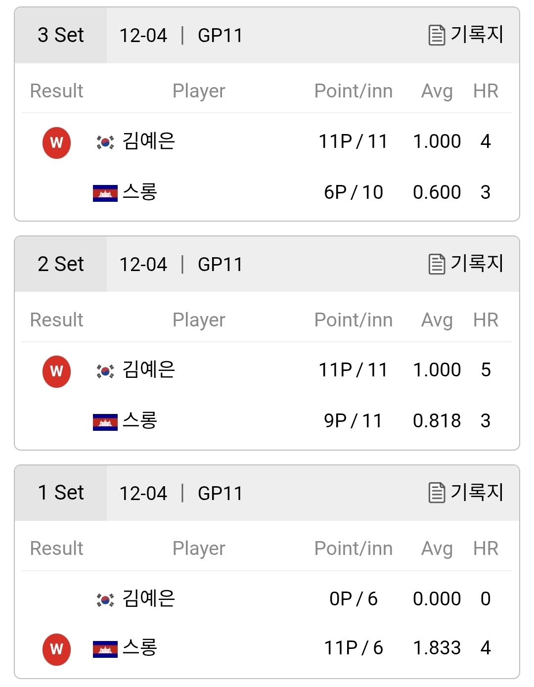 양 선수 모두 LPBA 챔피언십 우승 경험을 보유하고 있는 만큼 경기의 무게감은 남달랐습니다. 스롱 피아비는 LPBA 개인전 통산 9회 우승을 기록한 절대 강자이며, 김예은 선수는 꾸준한 성장세 속에서 2회 우승을 기록하며 새로운 강자로 떠오른 선수입니다.