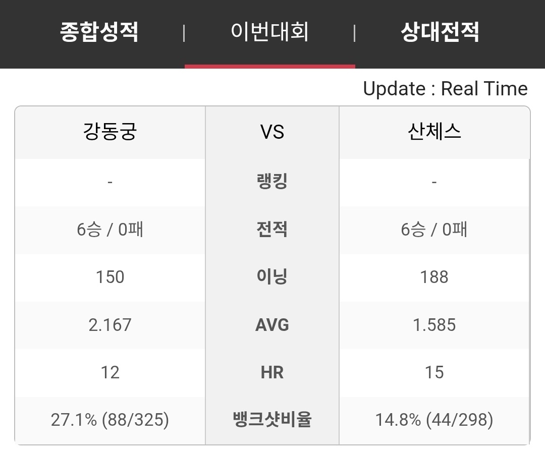 반대로 산체스는 강동궁과의 경기에서 평균 2.119를 기록하며 높은 득점 효율을 보여주었고 하이런 역시 9점으로 동일합니다. 공격 성공률에서도 산체스가 69.4%로 강동궁의 61.4%보다 앞서 있으며, 장타율 또한 15.3%로 우위를 보입니다. 다만 이번 대회에서 강동궁은 시즌 대비 가장 뜨거운 감각을 보여주고 있어 상대전적만으로 결과를 예측하기는 쉽지 않습니다.