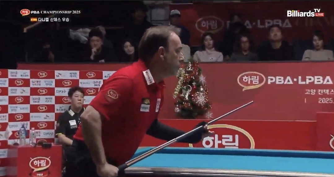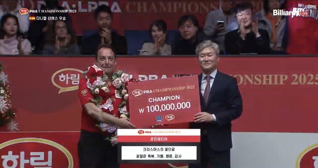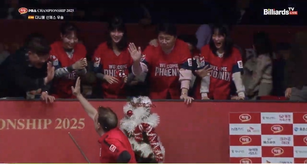 산체스는 지난 두 번째 우승 당시에는 눈물을 보이며 감격을 표현했지만, 오늘은 여유 있는 미소와 함께 자신의 고국 스페인 당구 선수들, 그리고 가족들에게 따뜻한 안부를 전했습니다. 또한 한국 PBA 팬들을 향해 “메리 크리스마스”라는 인사까지 덧붙이며 경기장 분위기를 더욱 훈훈하게 만들었습니다.