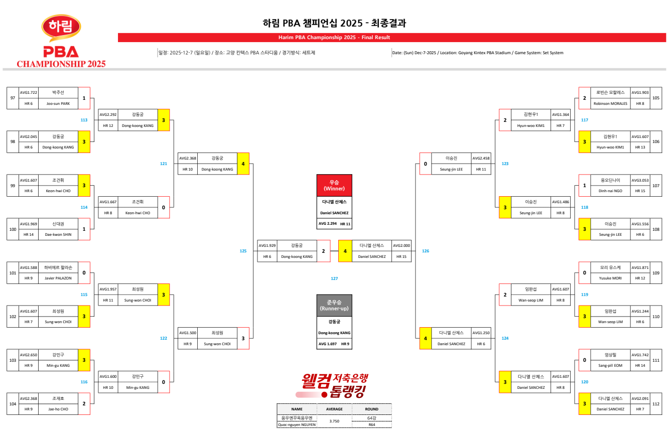 다니엘 산체스의 우승은 ‘명불허전’이라는 표현이 어울릴 만큼 압도적인 경기력이었습니다. 이번 우승으로 그는 PBA에서 통산 3회 우승이라는 커리어를 완성했습니다.