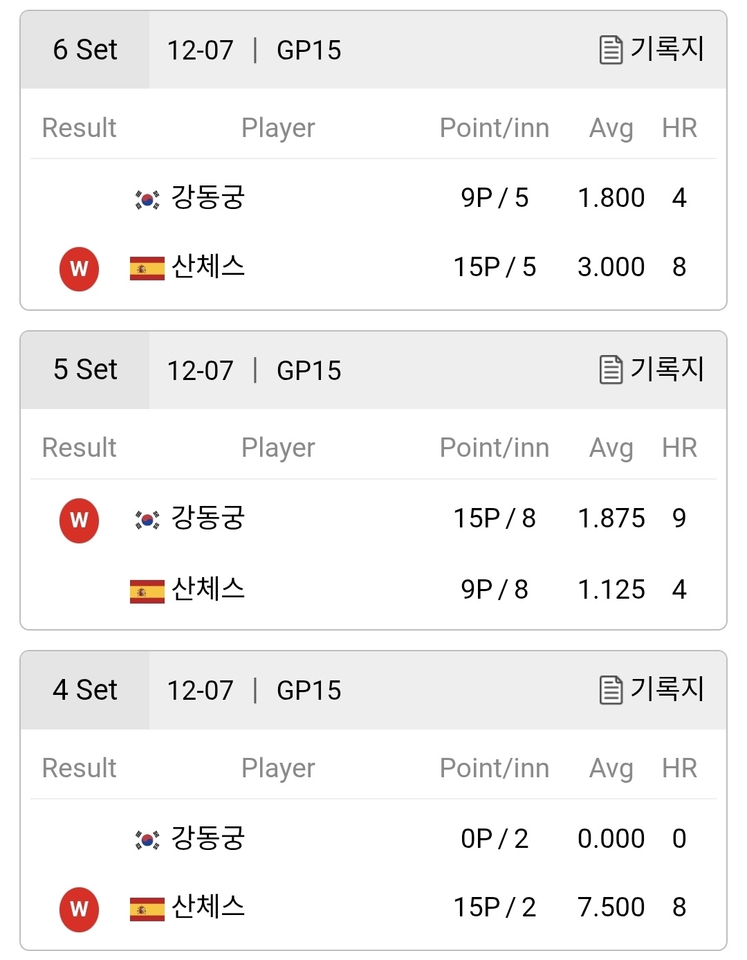 특히 4세트에서는 단 2이닝 만에 15점을 모두 완성하며 평균 7.500이라는 압도적인 수치를 기록했습니다. 이는 결승전 흐름을 완전히 가져오는 결정적 장면이었으며, 경기장 분위기도 산체스 쪽으로 빠르게 기울기 시작했습니다.
