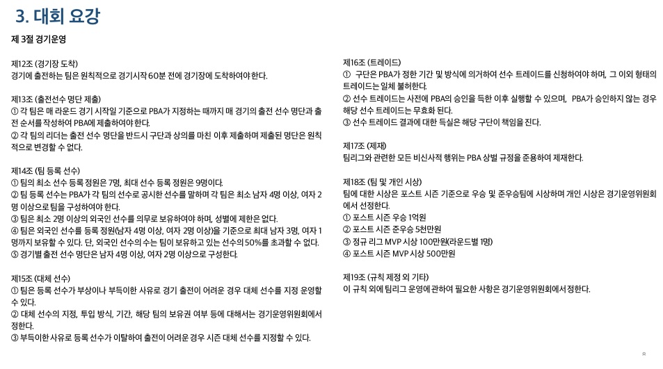 PBA 팀리그 포스트시즌 진출 기준은 어떻게 결정될까?이 글은 웰컴저축은행 PBA 팀리그에서 어떤 팀이 포스트시즌에 진출하는지를 공식 대회요강 기준으로 정리한 안내 글입니다. 정규리그 5개