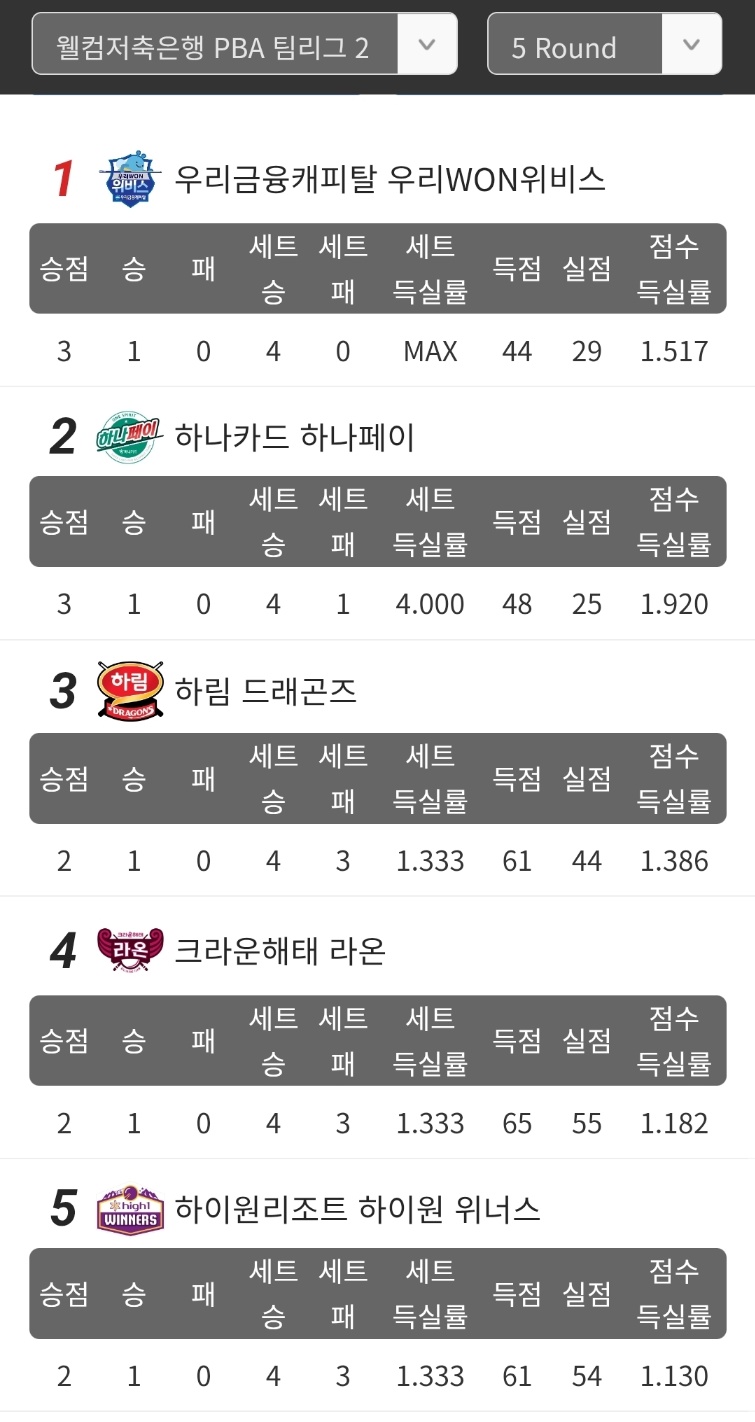 남은 5라운드 일정 속에서 어떤 팀이 흐름을 이어갈지, 또 어떤 팀이 반전을 만들어낼지 지켜보는 것이 이번 시즌 PBA 팀리그의 가장 큰 관전 포인트라 할 수 있습니다.