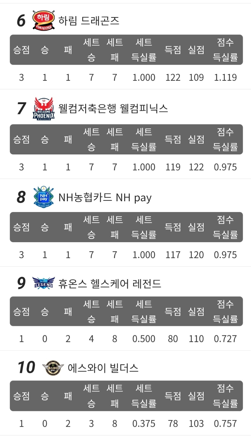 5라운드 중반을 넘어서면서 세트 득실과 점수 득실의 중요성도 더욱 커지고 있습니다. 단순한 승패뿐 아니라, 얼마나 안정적으로 세트를 가져가느냐가 순위와 포스트시즌 대진에 직접적인 영향을 미치게 됩니다.
