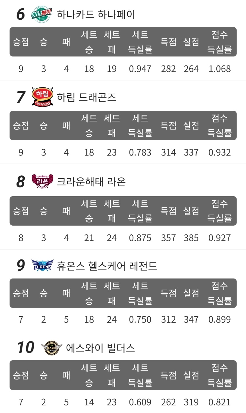 같은 날 크라운해태 라온과 하나카드 하나페이의 경기에서는 크라운해태 라온이 4대 2로 승리를 거두었습니다. 공격적인 전개와 높은 애버리지가 인상적인 경기였으며, 크라운해태는 하위권에 머물러 있지만 끝까지 포기하지 않는 모습을 보여주고 있습니다. 반면 하나카드는 세트 운영에서 아쉬움을 남기며 중위권 경쟁에서 다소 불리한 상황에 놓이게 되었습니다.
