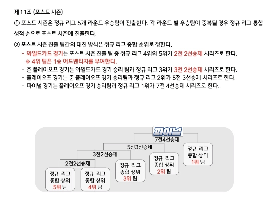 정규리그 상위 팀일수록 더 늦은 단계부터 출전하며, 경기 수도 줄어드는 구조로 설계되어 있어 정규리그 성적의 중요성이 다시 한번 강조됩니다.