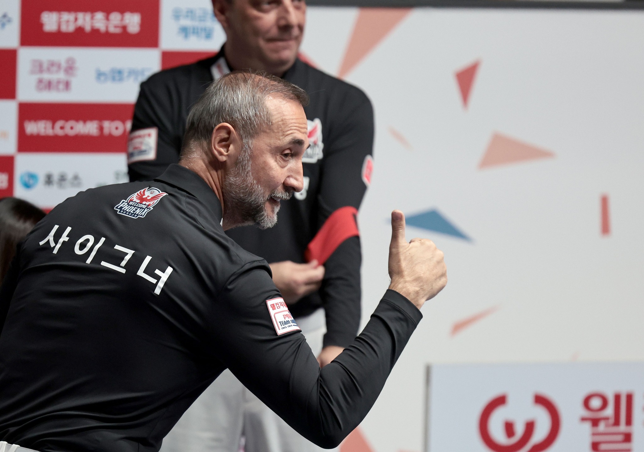 정규리그 개인 승수 1위는 웰컴저축은행 소속 세미 사이그너 선수입니다. 전체 90경기에 출전해 54승을 기록하며 승률 60.0%를 달성했습니다. 평균 애버리지는 1.857로 리그 최상위 수준이며, 하이런 14회 기록에서도 공격력과 집중력이 모두 뛰어남을 보여줍니다.