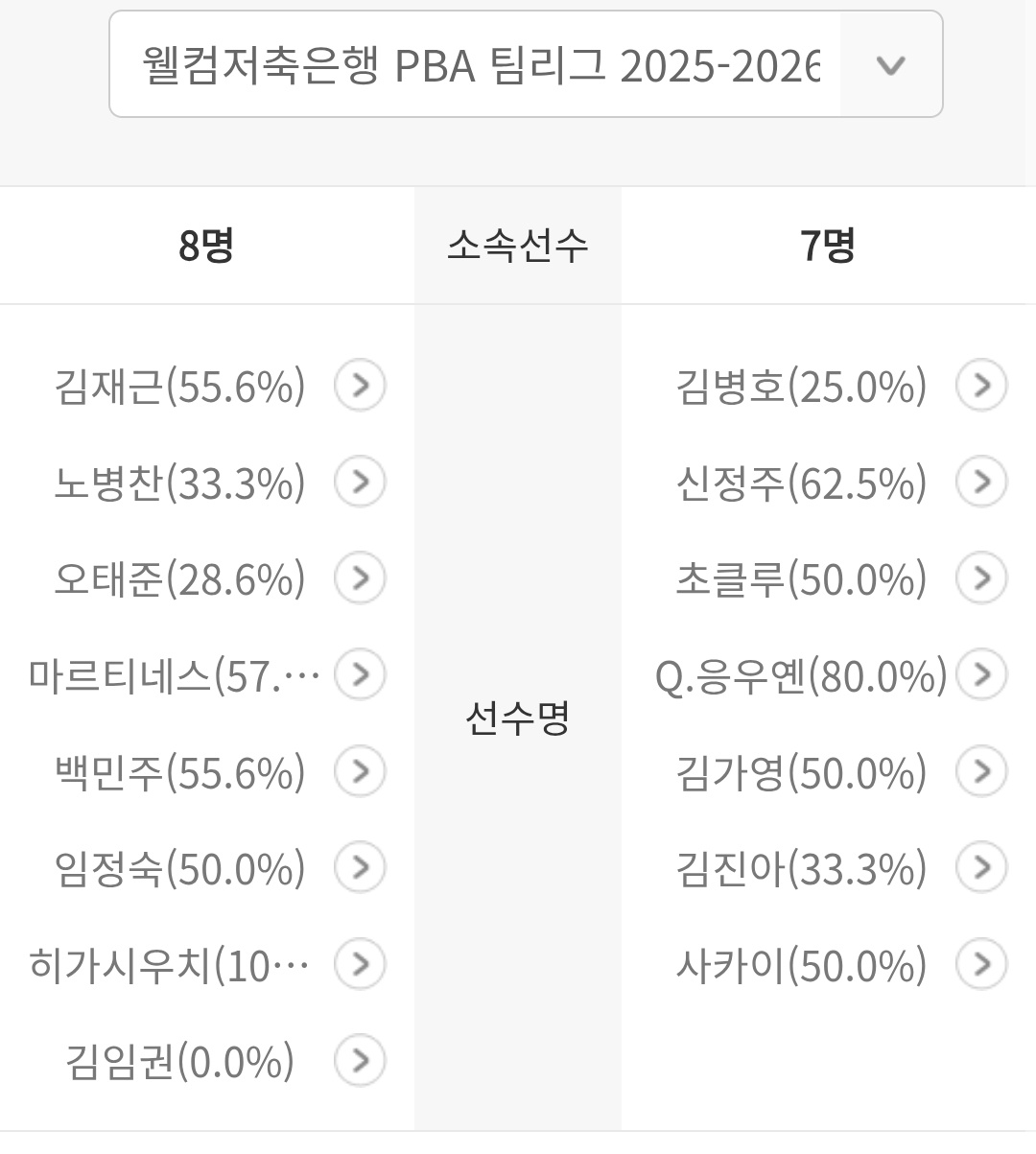 PBA팀리그 소속선수 명단 총정리 백과사전