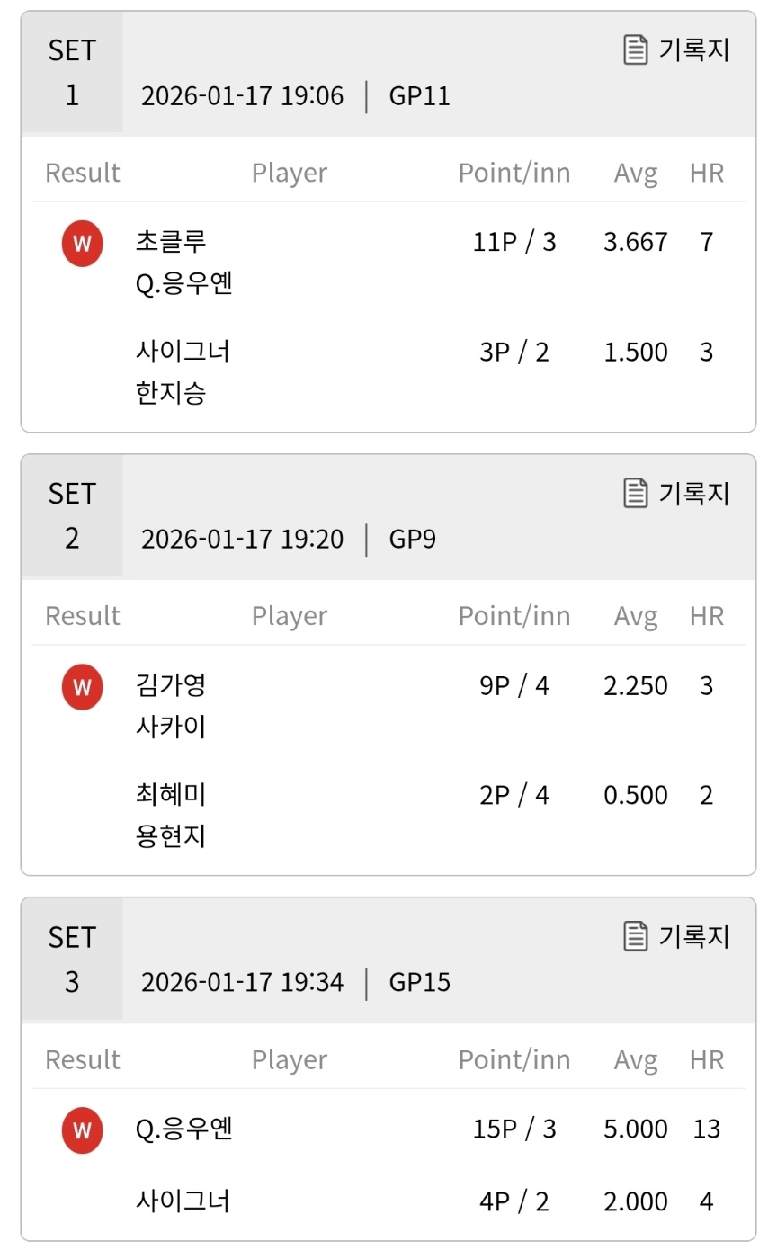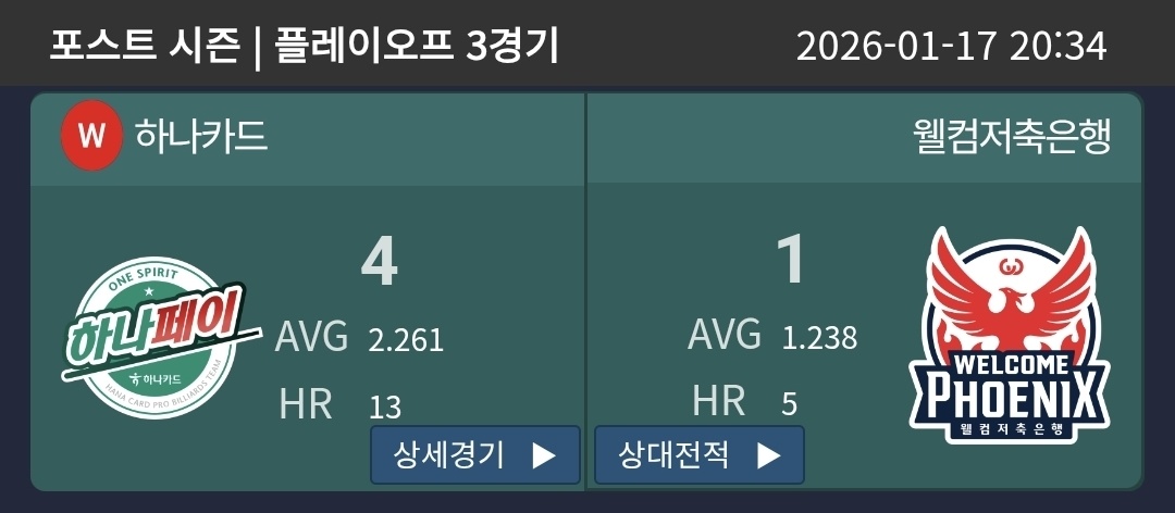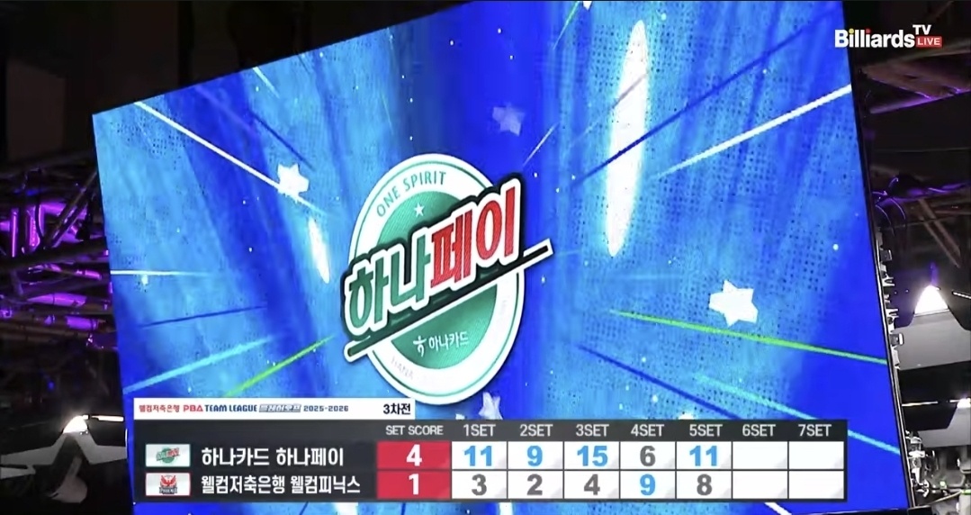 PBA 팀리그 포스트시즌 플레이오프 3차전 경기결과 - 하나카드 vs 웰컴저축은행 당구팀(1월 17일 저녁 7시)