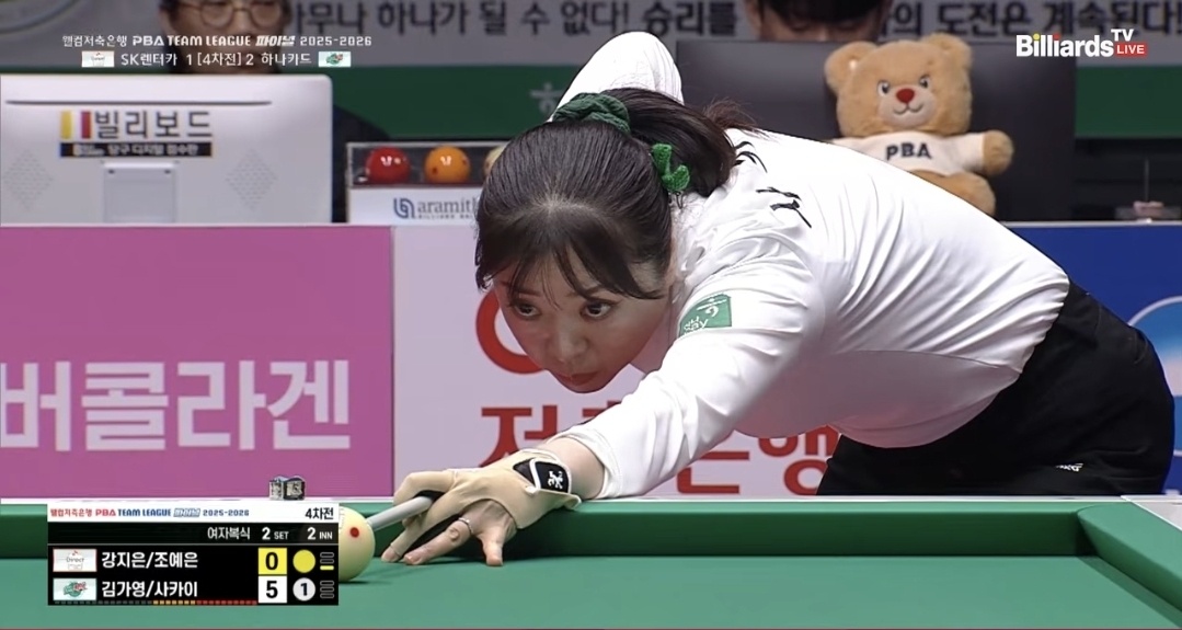 2세트는 여자 복식 9점 경기로 이어졌습니다. SK렌터카의 강지은-조예은 조가 4점 6이닝, 평균 0.667로 고전한 반면, 하나카드의 김가영-사카이 조는 9점 6이닝, 평균 1.500을 기록하며 안정적인 운영을 보여주었습니다. 여자 복식 세트에서 하나카드가 승리를 가져가면서, 팀 분위기는 더욱 하나카드 쪽으로 기울었습니다.