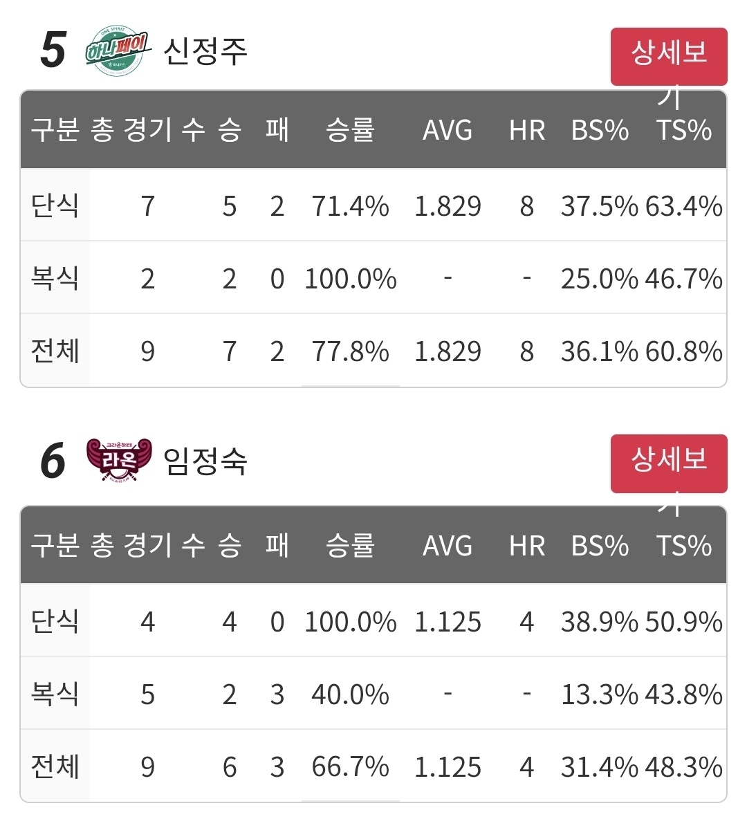 이번 승수 기준 선수 순위는 단순한 개인 기록을 넘어 팀리그라는 특수한 환경에서 누가 팀 승리에 실질적으로 기여했는지를 보여주는 지표입니다. 하나카드 하나페이의 우승은 선수 개인의 기량과 팀 조합이 얼마나 중요한지를 증명한 결과였습니다.