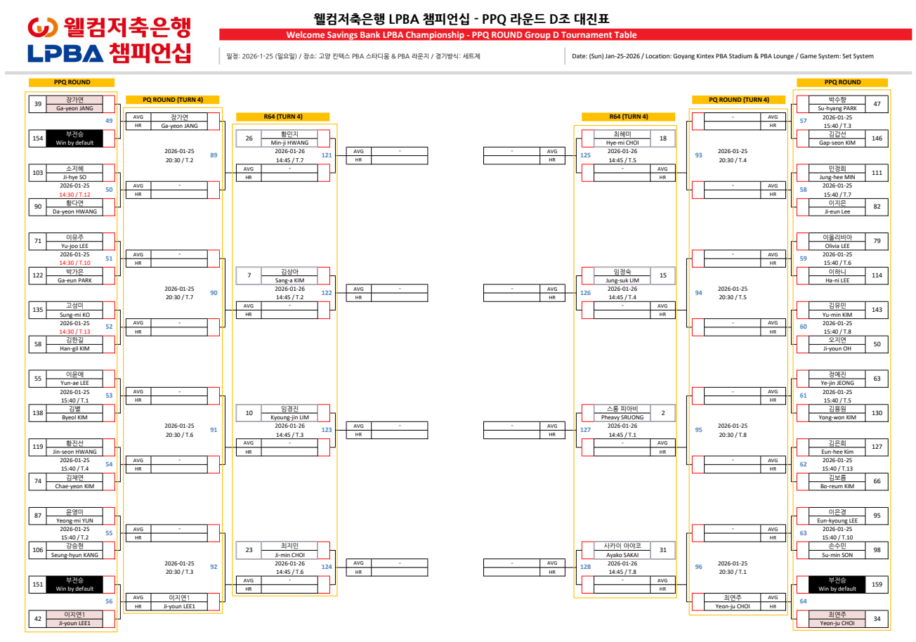 웰컴저축은행 LPBA 챔피언십 PPQ 대진표 – PPQ 라운드 선수들의 생존 경쟁 구도