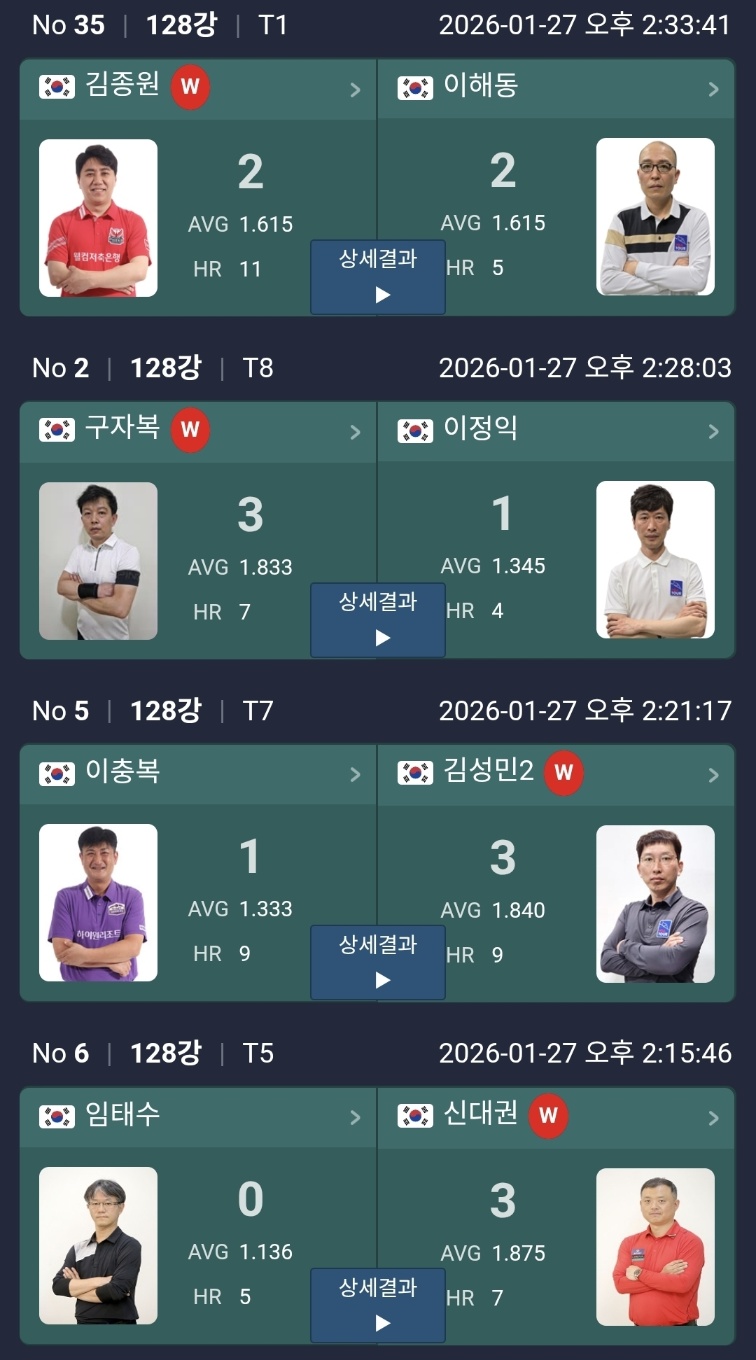 128강 1턴 탈락자 정리 – 이충복·김임권·한지승