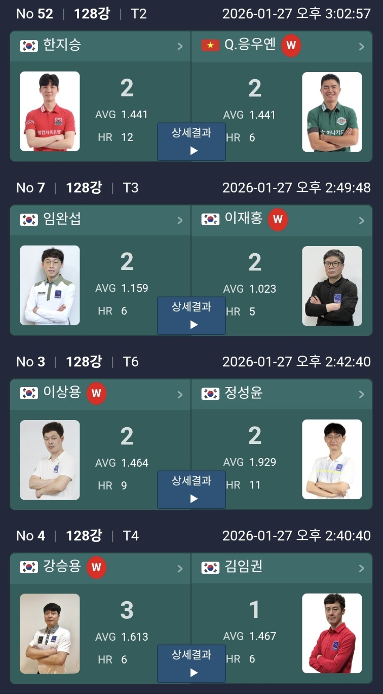 PBA 챔피언십 128강은 언제나 긴장감이 다릅니다. 4전 3선승제 세트제라는 방식 때문에, 단 한 세트의 흐름 변화가 그대로 탈락으로 이어지기 때문입니다. 1월 27일 오후에 열린 128강 1턴에서도 그런 장면들이 연이어 나왔습니다. 이름값보다 경기 운영과 집중력이 더 중요하다는 점이 다시 한번 확인된 하루였습니다.