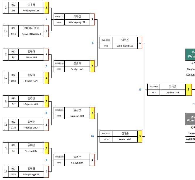 3. NH농협카드 LPBA챔피언십 22-23 준우승자 김예은 당구선수의 대진표